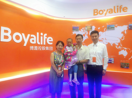 博雅控股集團總裁李詣書、副總裁王謀和早衰癥患者桐桐父女