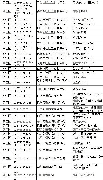 錦江區新冠疫苗接種點如下: