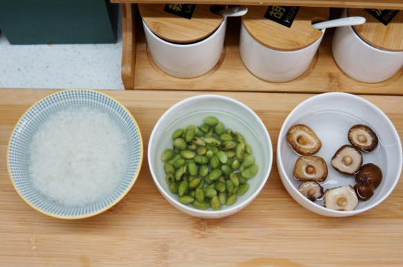 第一步:將大米淘洗干凈,浸泡半小時,干香菇泡開。