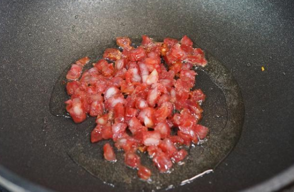 1. 炒臘腸時需用小火慢慢煸香,大火易糊,把臘腸中的油脂煎出來才會更香。